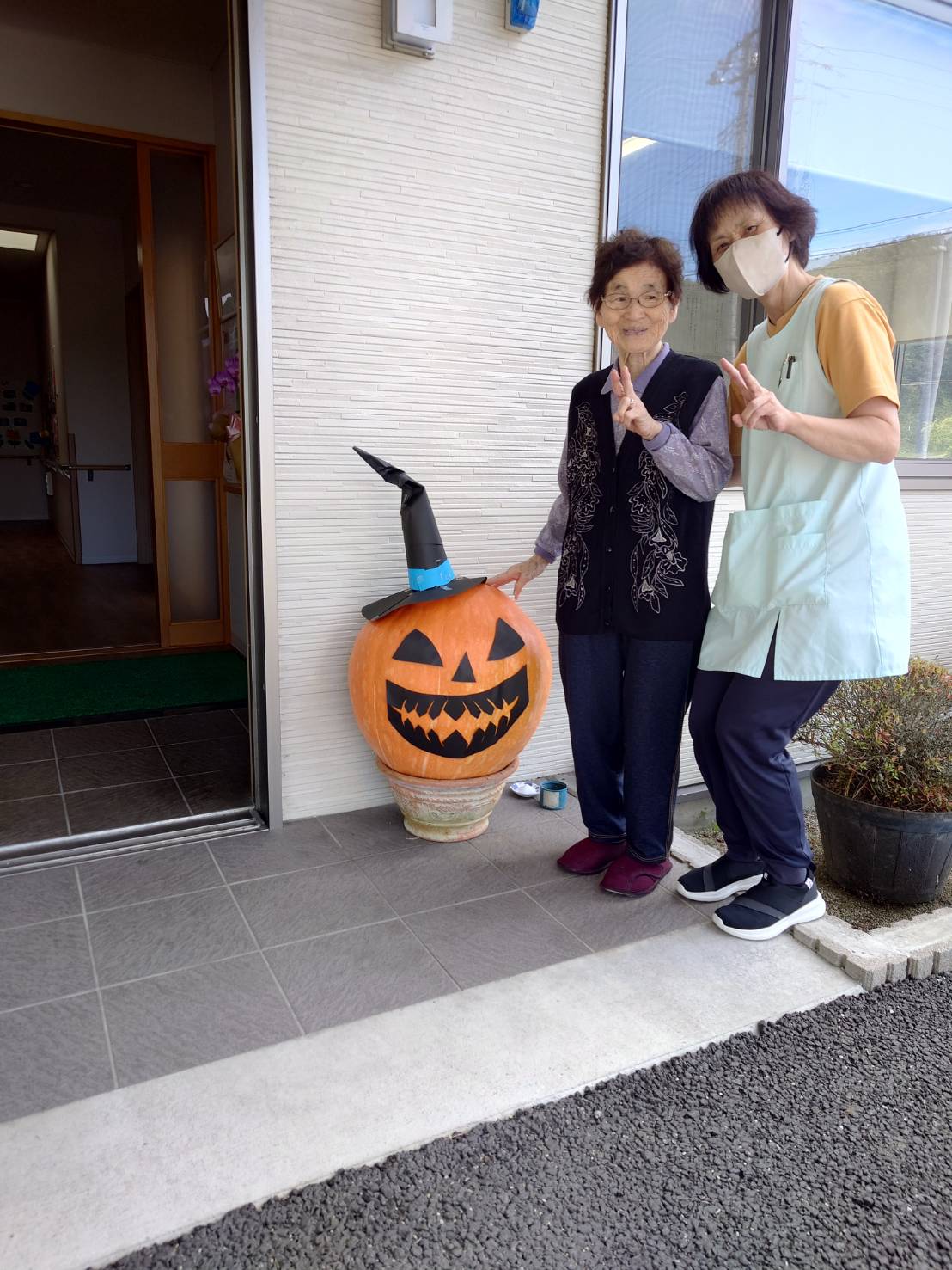 今月はハロウィンに合わせて、かぼちゃもハロウィン仕様に飾りつけました。